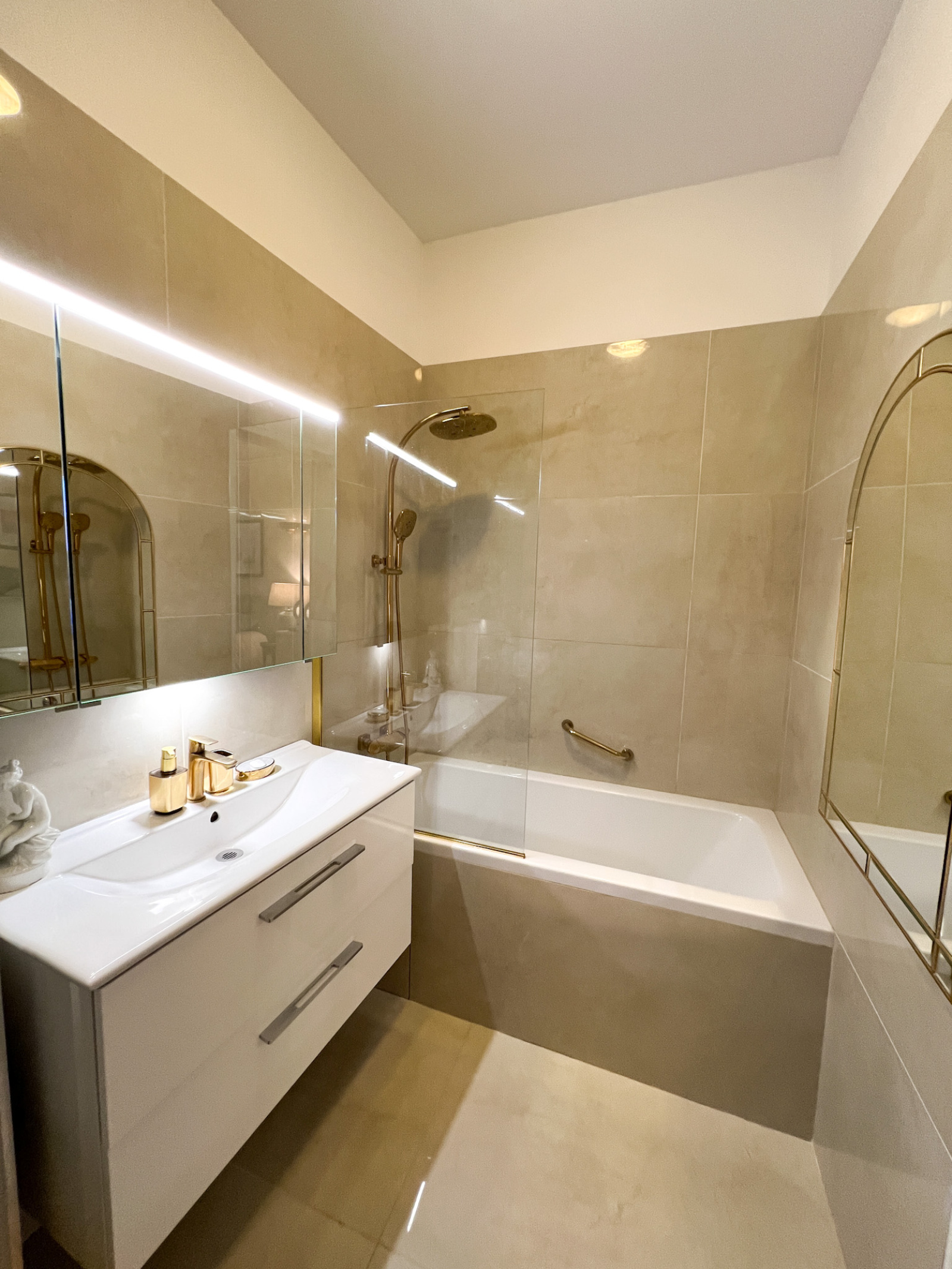 Cet appartement de haut-standing rénové avec goût, propose un salon spacieux donnant sur un balcon filant ainsi qu'une vaste cuisine entièrement équipée. L'appartement dispose de 3 chambres, toutes espacées pour garantir une intimité optimale, et 2 salles de bain. Un très beau grand couloir dessert les 2 premières chambres, ainsi qu'une salle bain, puis la Master-Bedroom avec salle de bain privative confère luxe et confort.